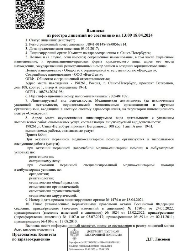 Я постоянный клиент клиники уже несколько лет — всегда получаю качественное обслуживание! В этот раз пришла за справкой о состоянии зубов: врач провёл осмотр быстро, но очень внимательно. Особенно нравятся специалисты по чистке — была у двух разных, оба доктора отлично себя проявили.